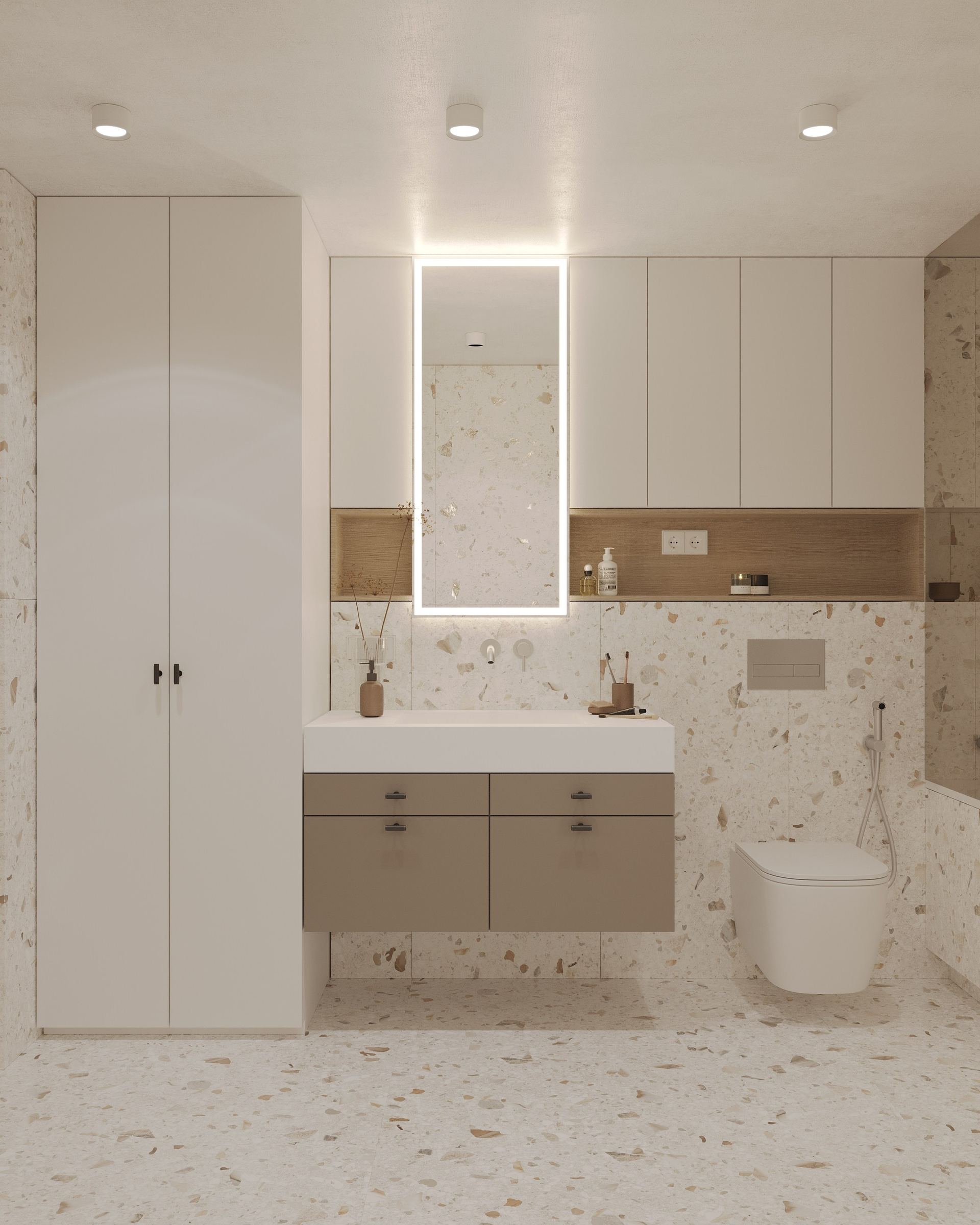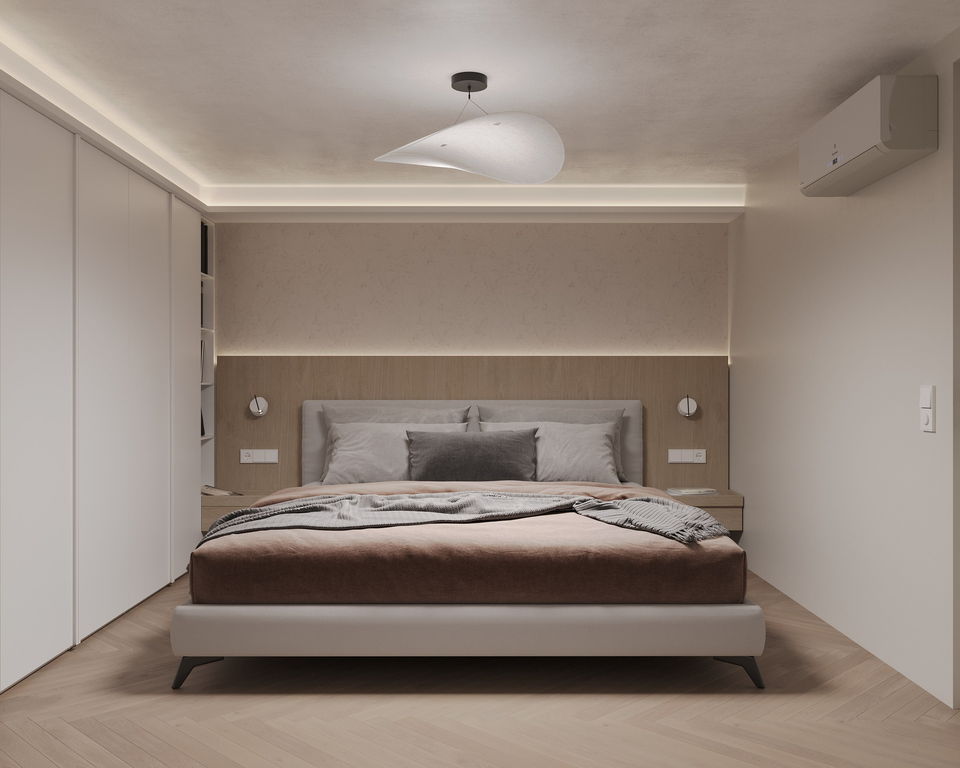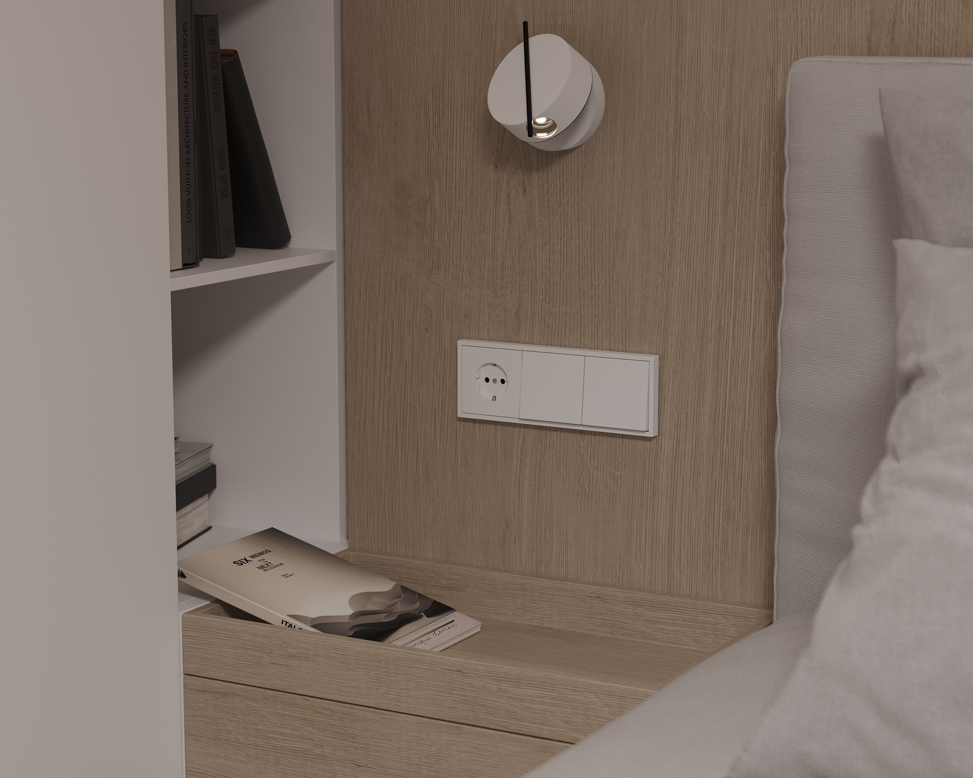 Minimalistic and monochrome, loft-type apartment with only one window, but comfortable planning and colorful childroom.