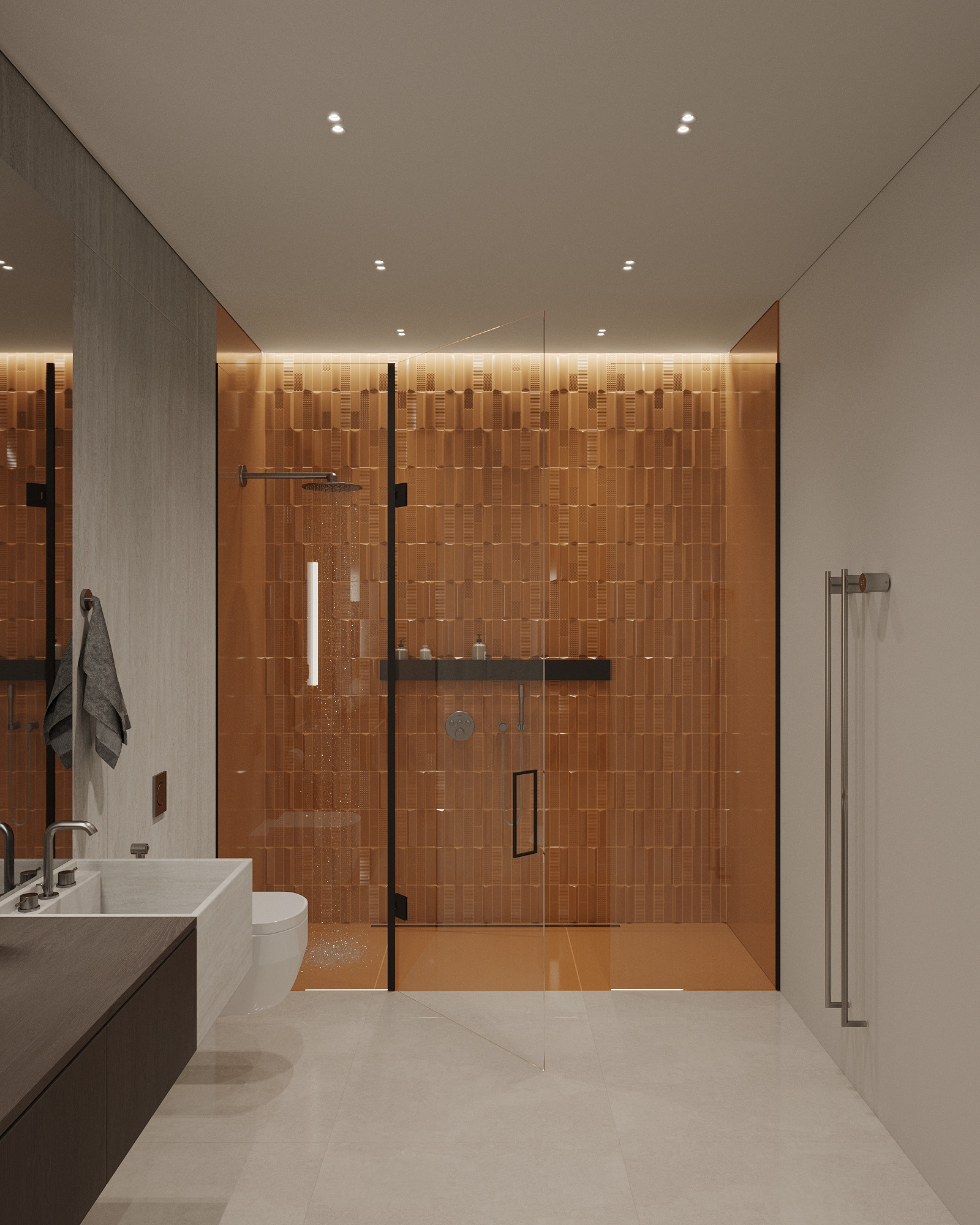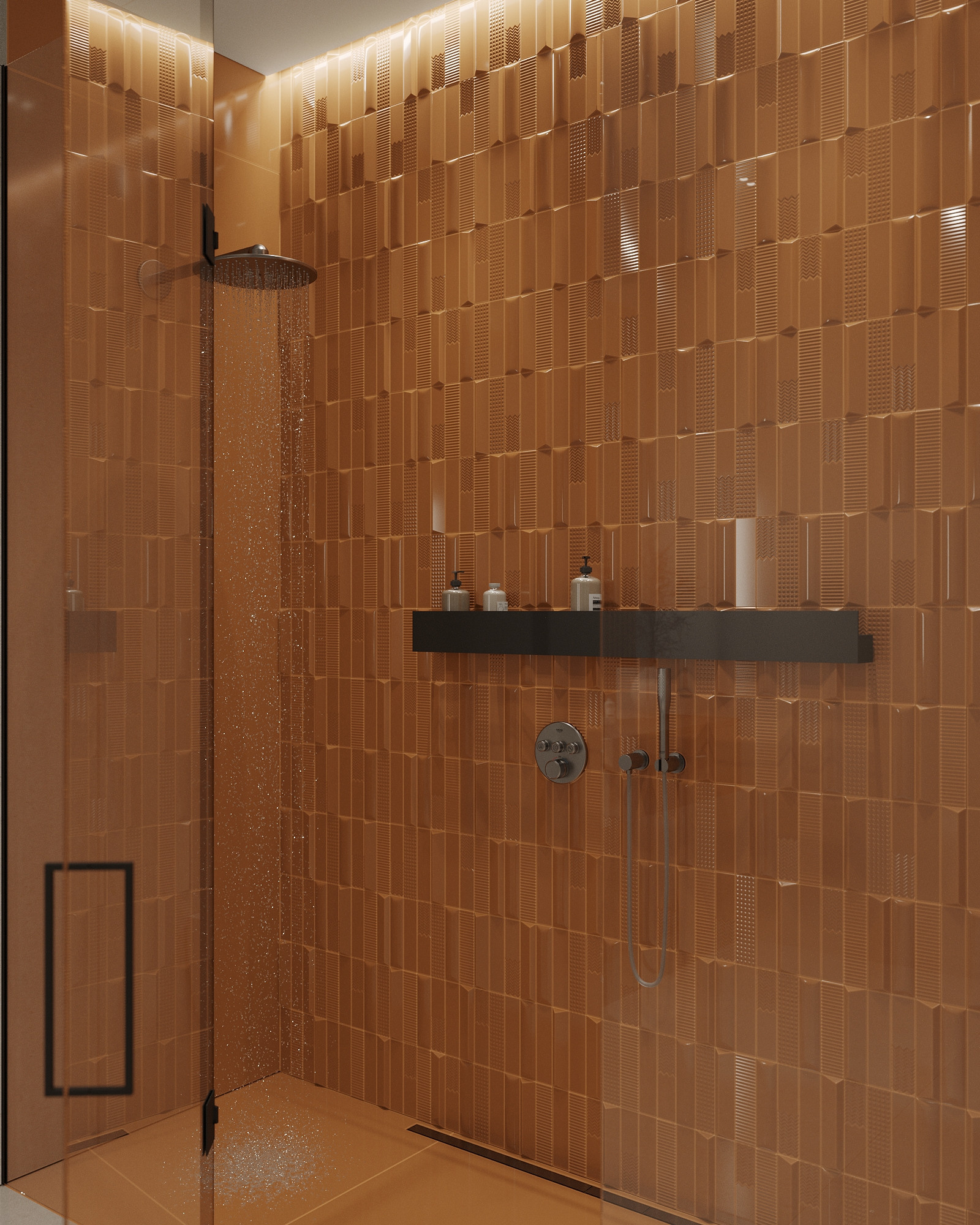 The main idea was to create a house without doors. The only area divided by it is the bathroom zone.