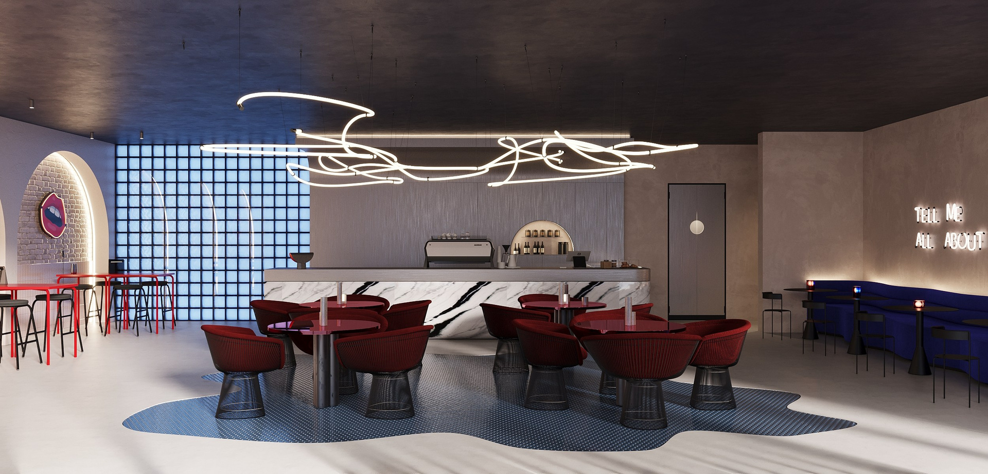 Colorful and funky bar interior design concept. Would you visit one of those?
